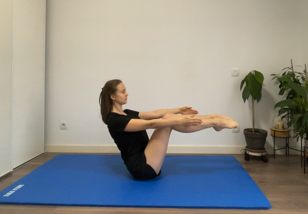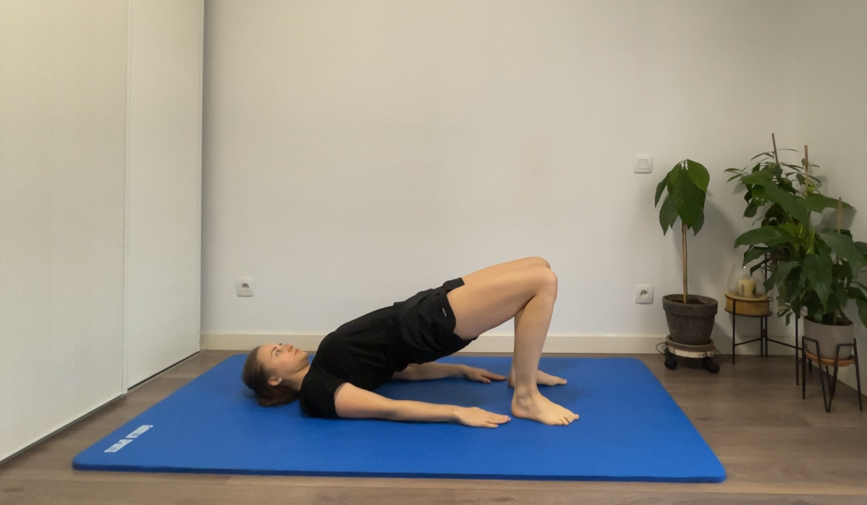 La séance se poursuit avec une série d’exercices de Pilates visant à renforcer les muscles profonds, améliorer la mobilité et développer la coordination.